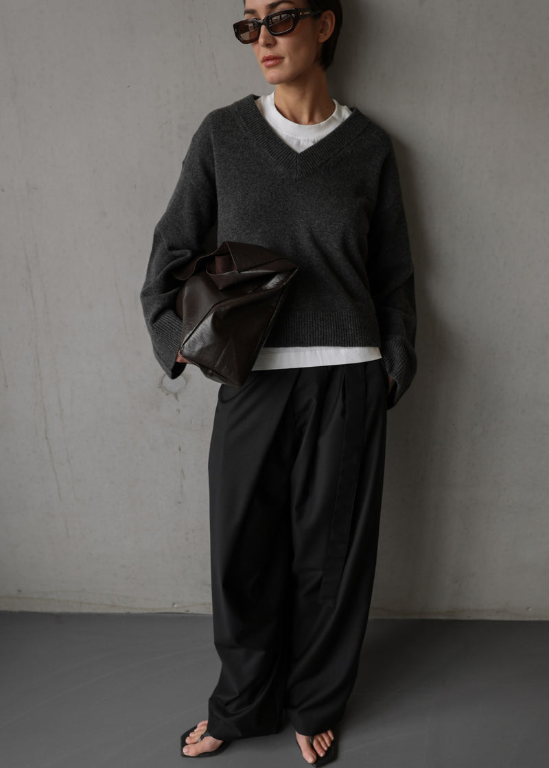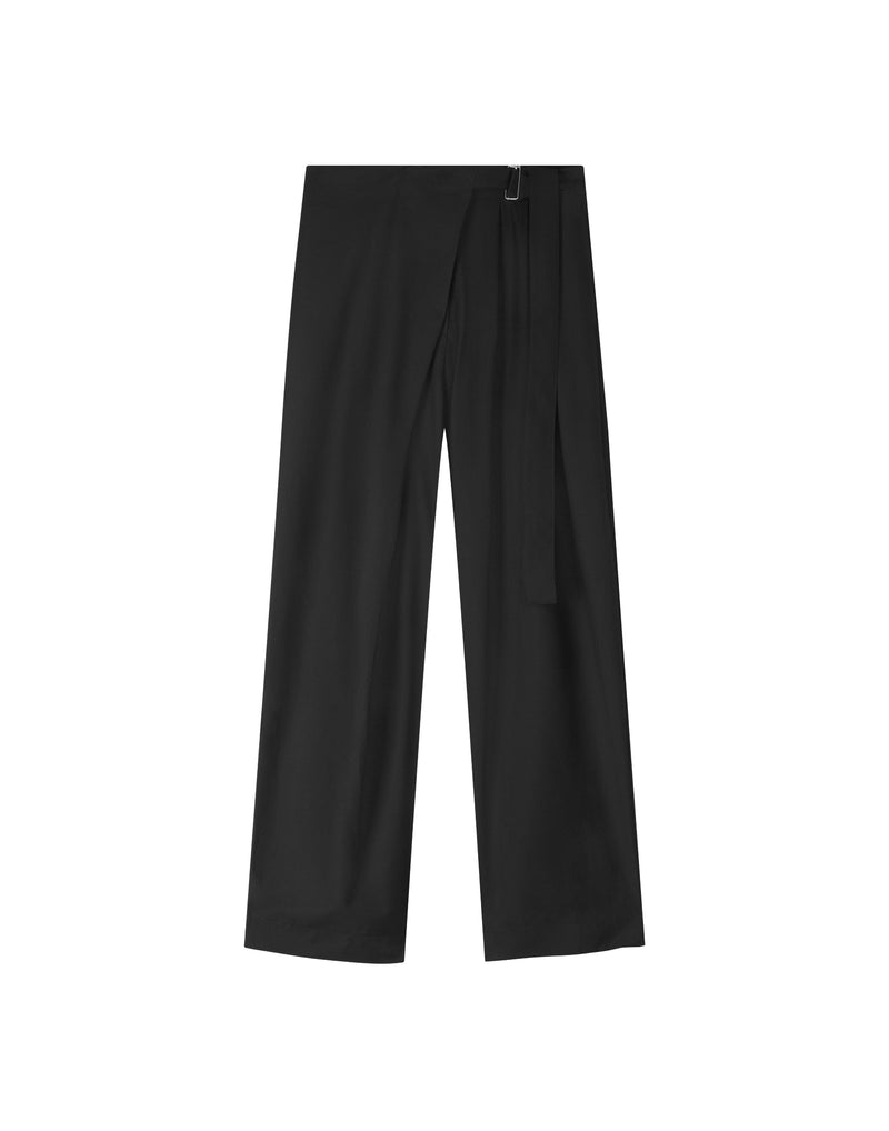 Modernising classic tailoring, these pants are designed in a wrap-front shape that's held in place with a D-ring belt. They're crafted from lightweight fabric and are tailored in an asymmetric silhouette with pleats that fall from one side. The model is 176 cm and wears a size S. The material is 70% pes, 30% viscose.