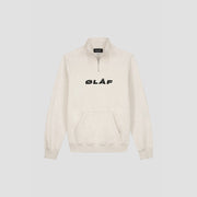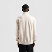 This Zip Mock sweater receives a small update with a large italic logo on the chest in black on an Ecru Heather colorway. Donned in soft fleece fabric it also has a large pocket to store all your essentials. Wear it as a flexible layering piece, or to land in style at every destination.