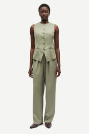 Trousers with a loose fit and wide leg. Elasticated waistband. Side slit pockets. Main material made from an elastic recycled polyester-blend. This product is GRS certified. Each stage of the supply chain has met strict social, environmental, and chemical requirements.