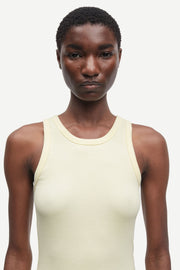Rib-knitted tank top with a slim fit. Main material made from an elastic organic cotton-blend. This product contains organic cotton grown without the use of GMOs or hazardous chemicals.