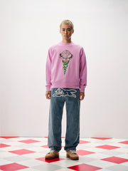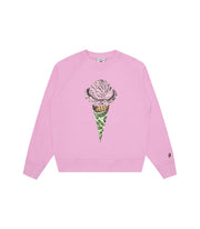 ICECREAM Pre-Fall '25 - The Cone Crewneck presents a screen print graphic at front and the ICECREAM signet at back.