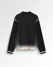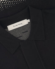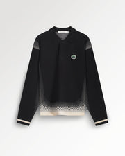 A statement in refined knitwear, this shirt is crafted from a smooth viscose-blend using a bird's eye jacquard technique for subtle, all-over texture. An intarsia-knit graphic of degrading lines flows across the body, a direct visualization of musical soundwaves from Filling Pieces' 'United by Rhythm' collection. Finished with hidden branded buttons for a seamless look, this piece pairs with matching loafers for a complete, head-to-toe statement.