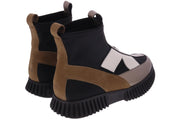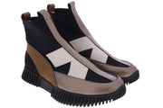 stretch boots with graphic leather inserts
