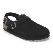 The BIRKENSTOCK Tokio clog is a variation of the classic Boston. The model is characterized by its ankle strap and can easily be worn any time of the year. Here, the classic model comes in a particularly cozy version with color-coordinated shearling footbed lining and shearling-lined straps. The upper is made from soft suede.