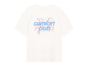 Short sleeve jersey t-shirt in Off White. Slightly oversized fit in a medium weight cotton. Ribbed crewneck collar. Comfort Club Pegasus print graphic to the chest and back.
