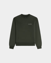 The Matchstick Shield Sweater in Rosin is a unisex, regular-fit crewneck sweater made from 100% cotton with a soft, brushed interior. Featuring small chest artwork and a large back graphic, it showcases the Dias logo and Matchstick Shield in screenprint. Women may prefer to size down for a more fitted look.