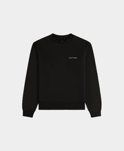 The Matchstick Shield Sweater in Black is a unisex, regular-fit crewneck sweater made from 100% cotton with a soft, brushed interior. Featuring small chest artwork and a large back graphic, it showcases the Dias logo and Matchstick Shield in screenprint. Women may prefer to size down for a more fitted look.