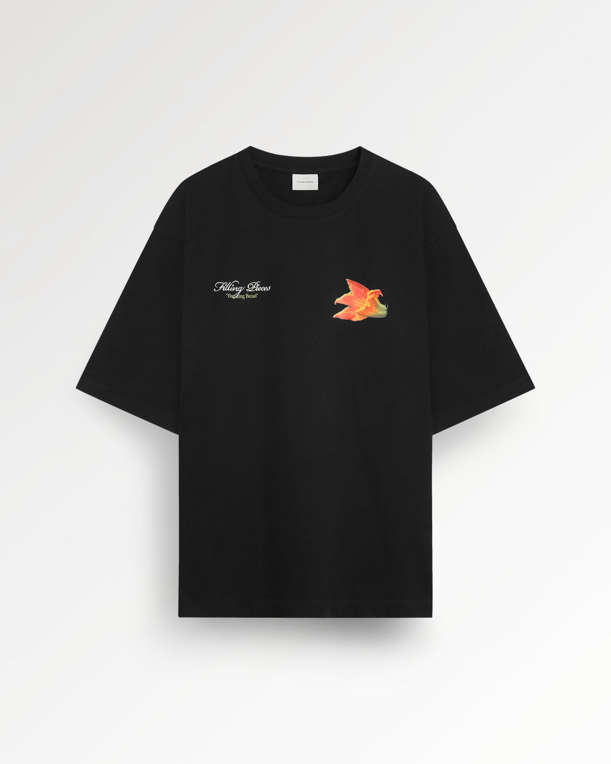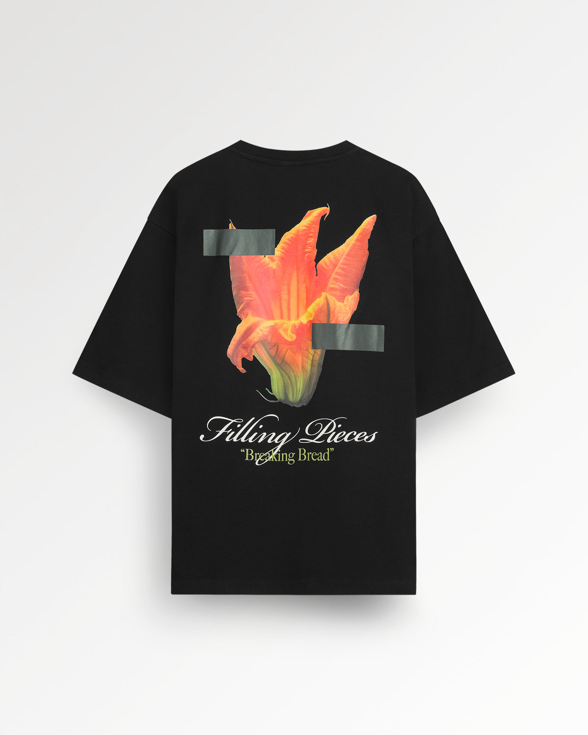 This T-shirt highlights an edible piece of art from nature. This classic Black version provides a striking backdrop for its 'Zucchini Flower' graphic—an artwork that celebrates an ingredient used in several cuisines and is also featured on our Resort Shirt Mesh. This is a beautiful, subtle nod to the collection's culinary narrative. Cut for a modern, boxy fit, this tee is a sophisticated statement piece.