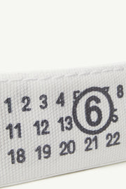 A playful interpretation of the Maison’s Trompe l’oeil concept, this oversized clutch transforms MM6’s numeric artwork into a statement piece. Featuring an exaggerated label design, it balances irony with function, complete with a zipped compartment and the signature white stitch line.
