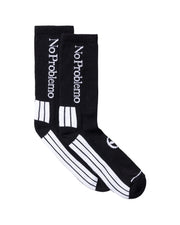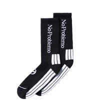 Jacquard socks in a sports-blend mix yarn featuring no problemo graphic.
