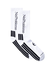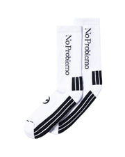 Jacquard socks in a sports-blend mix yarn featuring no problemo graphic.