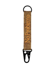 Carabiner keychain with webbing strap featuring no problemo graphic.