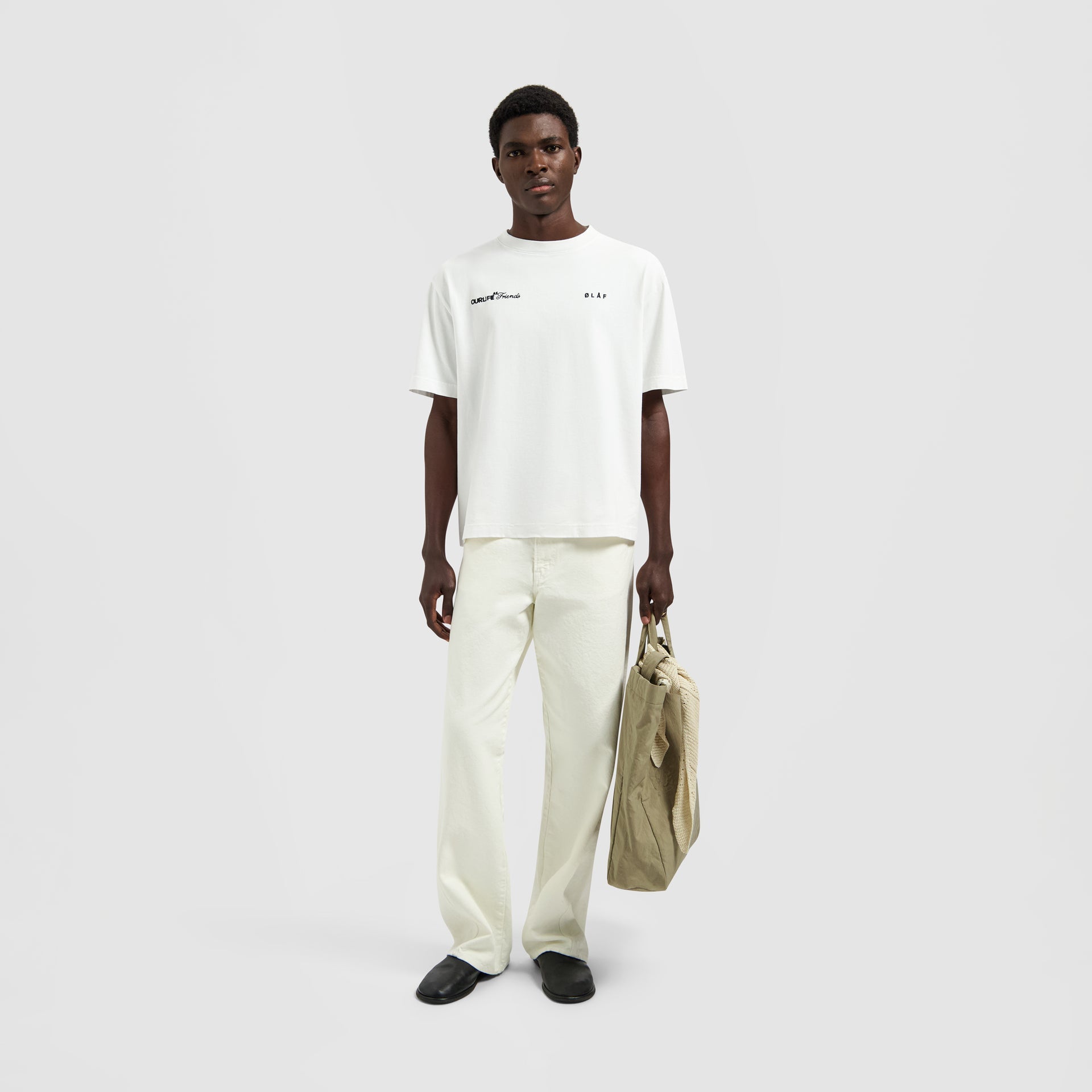 The Script Friends Boxy Tee in Optical White features a relaxed boxy silhouette with a playful script logo at the chest. Made from organic cotton, it offers a soft and easy everyday expression.