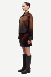 Leather and cow hair miniskirt with a slim fit. Zipper and button closure at the side. Fully lined. Main material made from 100% cow leather. This product contains leather sourced from LWG-certified suppliers. LWG promotes responsible environmental practices across the leather supply chain.