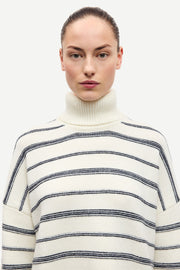 Striped turtleneck sweater with an oversized fit and dropped shoulders. Rib-knitted collar, cuffs, and hem. Main material made from a wool blend. This product is RWS certified. The RWS describes and certifies animal welfare and land management practices in wool fibre production and tracks the certified material from farm to final product.