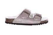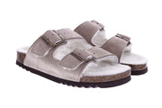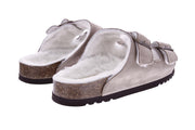 Scholl Josephine sandals in dark beige suede with shearling lining.