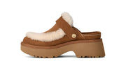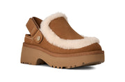 Evolution is a way of life, and Ugg's Heritage details have taken on a new form with the Esmee Clog. Designed with comfort so plush you can see it, it has a genuine suede upper and a lush sheepskin spill seam. Slip into the comfort of the lamb leather footbed and secure your fit with the adjustable heel strap, or swivel the strap to the front for backless clog comfort. Finished with a 2' heel made from lightweight EVA for effortless support.