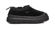 Who (and we can't stress this enough) wants to take a walk in the drizzle with us? We can always count on the Tasman Weather Hybrid to travel with us outdoors, even if its a little wet out there. Featuring waterproof suede and seam-sealed construction as well as the cozy UGGplush™ upcycled wool lining, the Tasman Weather Hybrid offers a light, slipper feel with an easy slip-on silhouette. The outsole is made from renewable, rainwater-nourished sugarcane and features a permanent galosh for wet conditions.