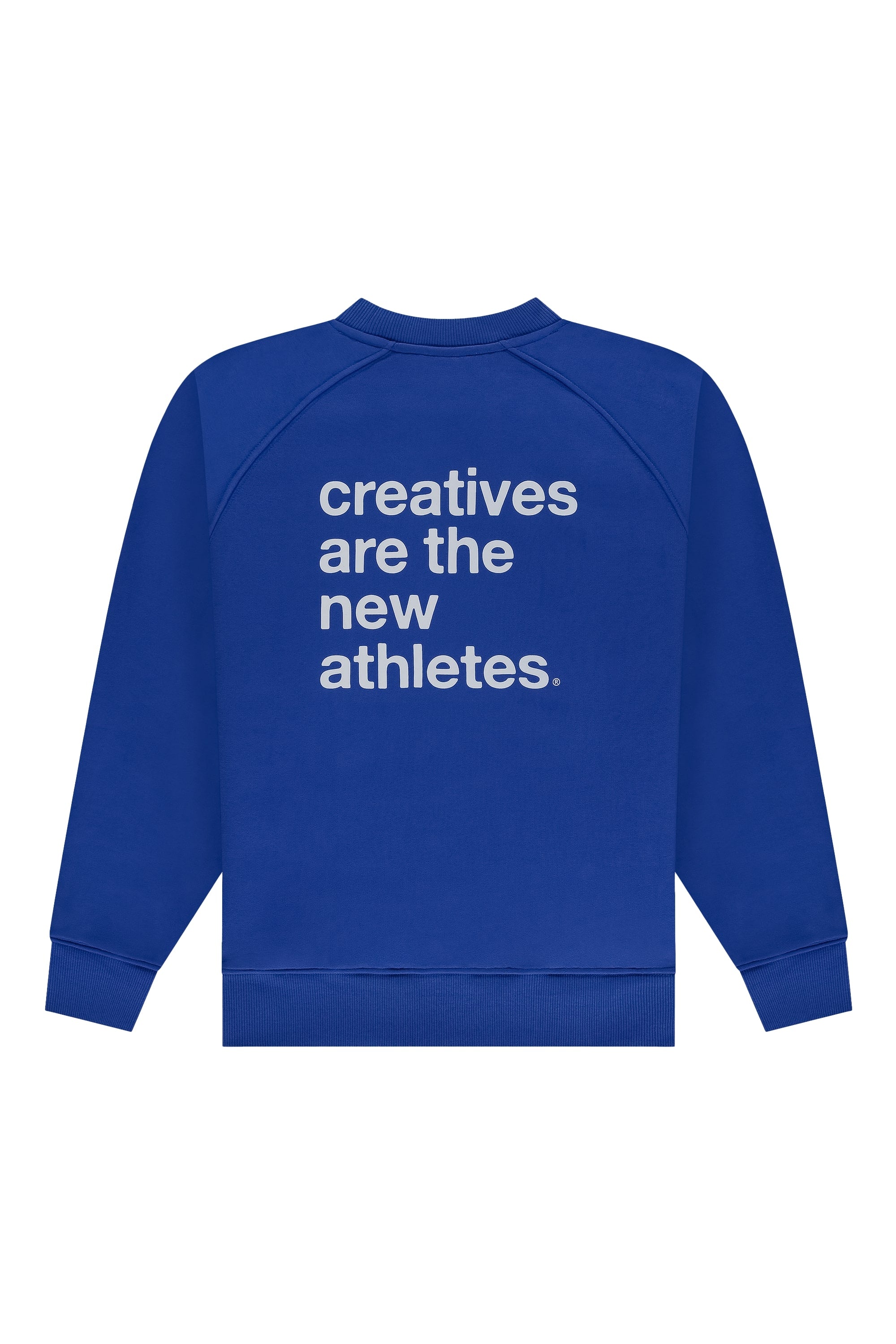 the catna crewneck in surf the web, featuring an embroidered emblem logo on the left chest and the catna statement “creatives are the new athletes” printed large across the back.