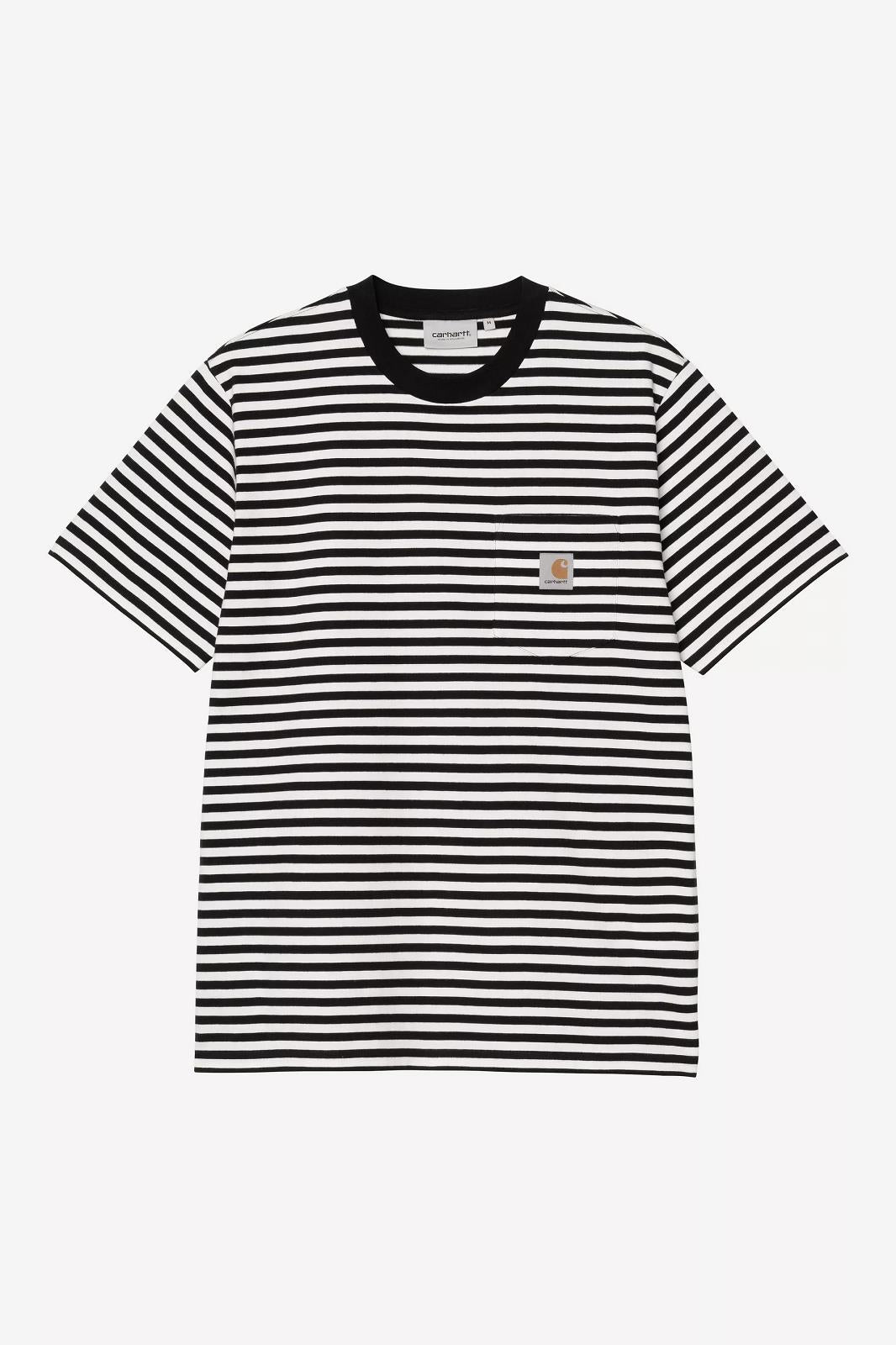 The S/S Ezra Pocket T-Shirt is made in a regular fit from midweight cotton jersey featuring allover stripes. The item is detailed with a chest pocket and woven Square Label.