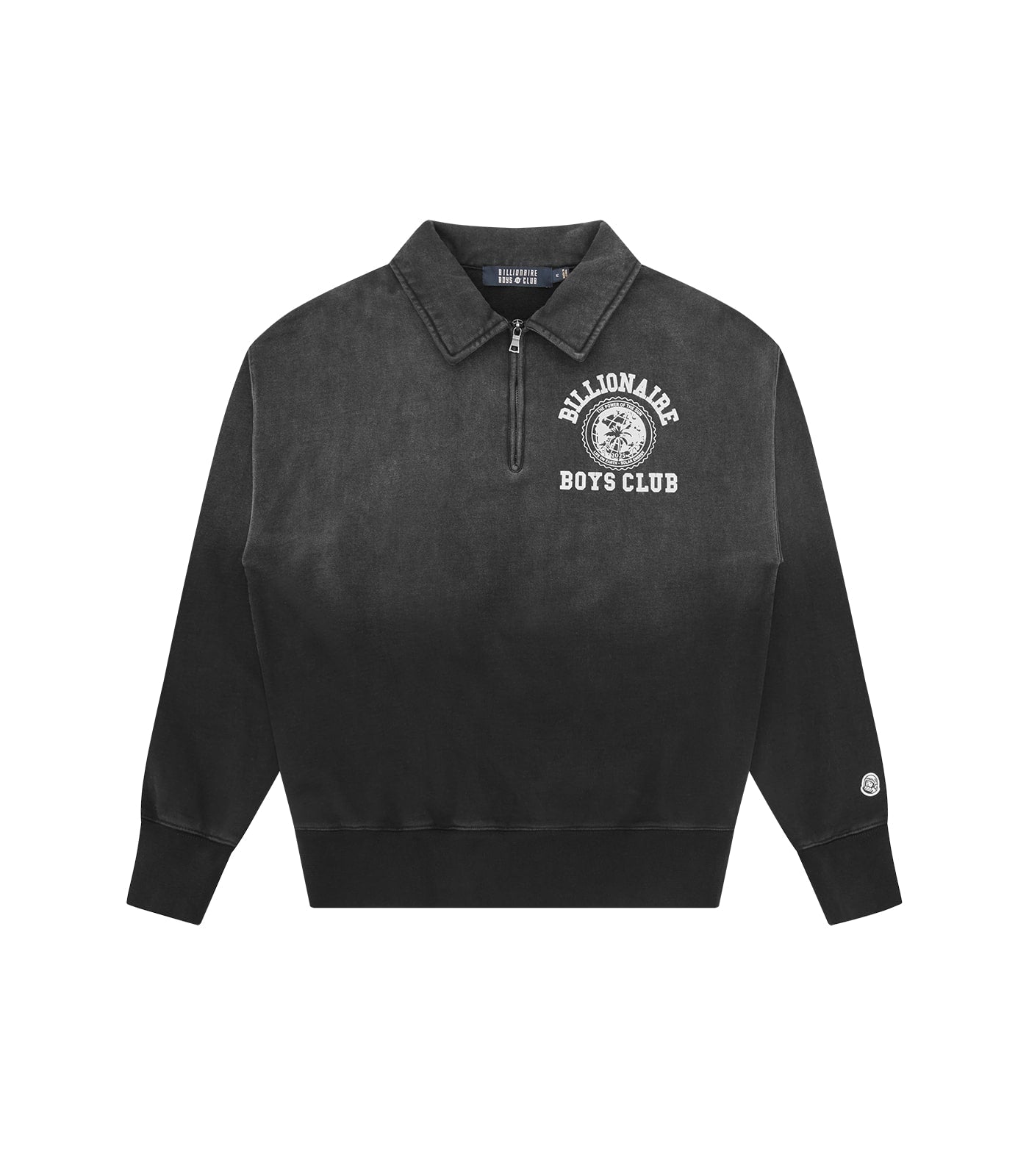 Billionaire Boys Club Pre-Spring '26 - This World College Washed Quarter Zip presents a half zip at the collar, the Billionaire Boys Club college graphic at chest and repeated all over the back.